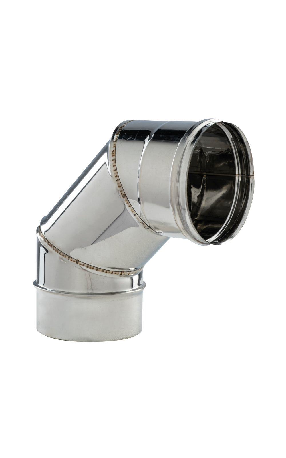- Curva da utilizzare per la realizzazione della canna fumaria in verticale e i canali da fumo in orizzontale in parete semplice. Curve realizzate in acciaio inox 316 o 304, spessore 5/10 0.5mm